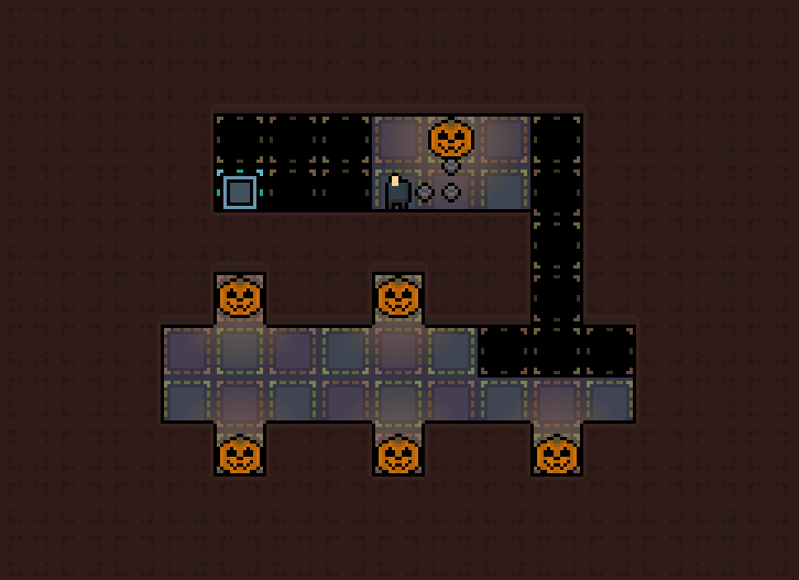 A spooky-themed followup to a game from several years ago - what an original and clever idea! If you haven't played the original game Shackle, I recommend you play that first - partially because it's great, but mostly because this new game assumes you're already familiar with the mechanics from the original. This game introduces pumpkins, which emit light and keep you safe - step outside that light and you'll have to restart. As with Snekburd, the puzzles are excellent but note that the difficulty level is quite high.