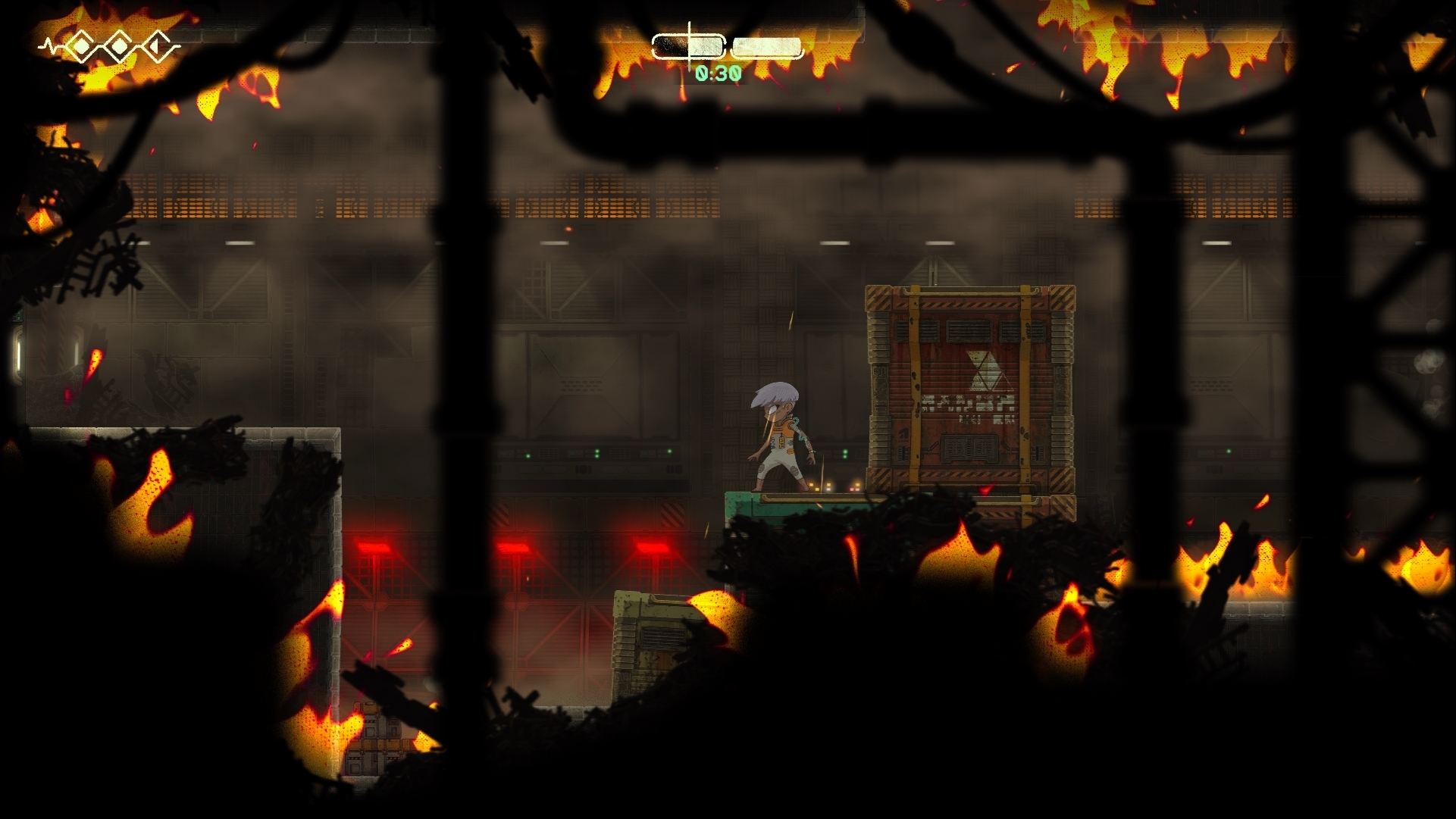 Waking on what appears to be an abandoned spaceship, a few things quickly become obvious as I boot up the demo for Echo Weaver, an upcoming metroidbrainia from the makers of The Wild at Heart. I notice that the polished movement and platforming set an encouraging pace of progression. Often, metroidvania/brainias leave you feeling weak at the start because they thrive on the slow accrual of power. Echo Weaver is not one of those. It feels great instantly. Also—and I probably should have noticed this first—everything is on fire.