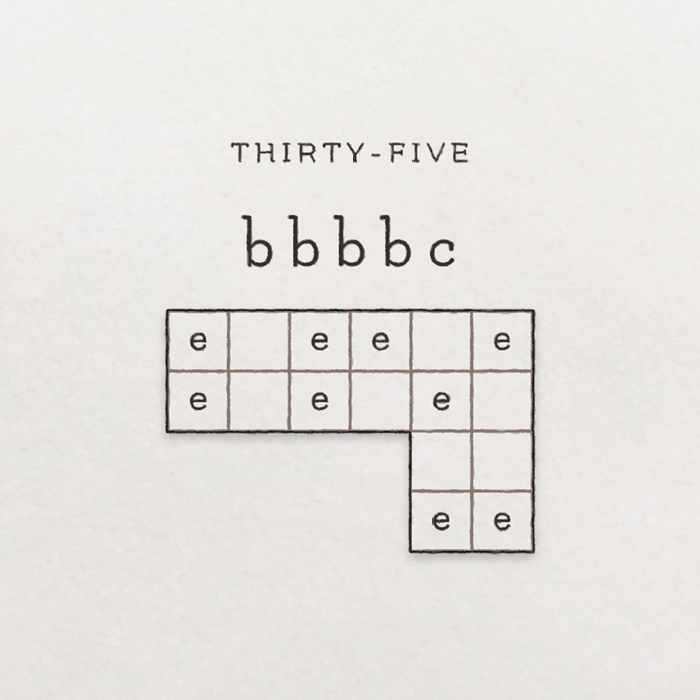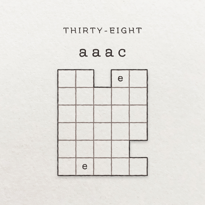 And it kept working. Puzzles thirty-six and thirty-seven also succumbed, with a bit of effort, to this same rule interpretation. Confirmation, I thought. My conception of “e” grew rigid. Calcified. Confidence led to comfort led to certainty. Then I got to puzzle thirty-eight.