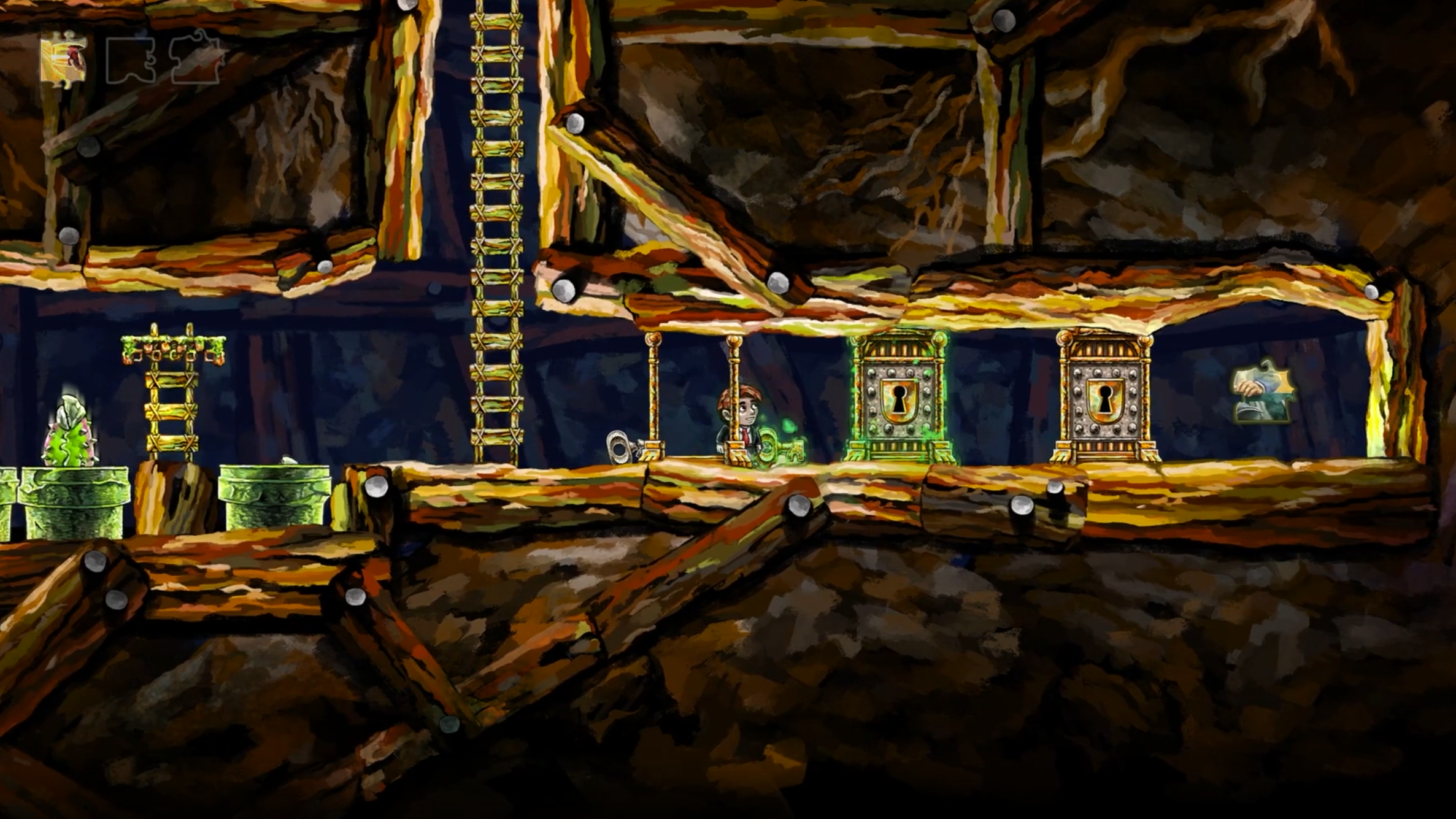Less predictably, the same truth holds for Braid’s keys-and-doors puzzle. The moment I’d classify as the climax, the most impactful and memorable moment, isn’t the solve itself—the fabled “eureka”. Rather, it’s the moment when the player realizes what looked easy is actually difficult, when they stare at the screen and ask, “How is this even possible?”