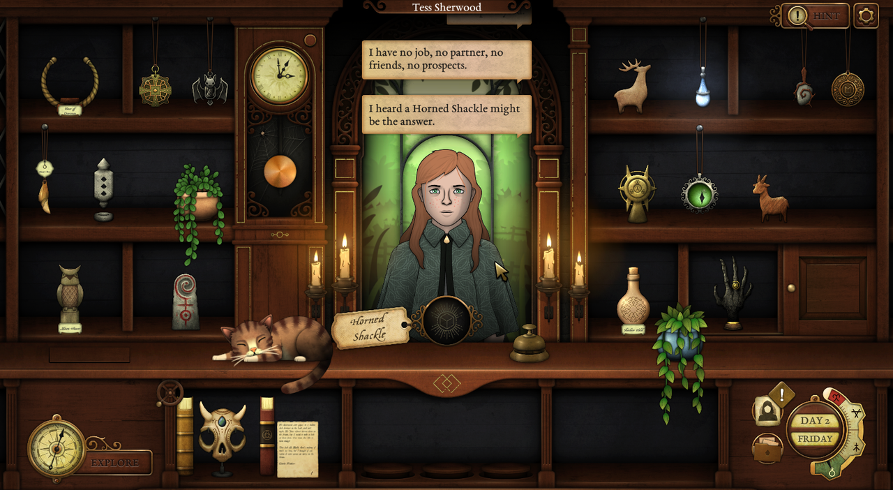 There are many characters to get to know, and a story seems to be developing involving ravens and 'a sickness' that the shop owner has left to take care of. In Strange Horticulture, a troubling story begins to unfold, with small snippets being revealed at the end of each day, and in the interactions you have with your customers. From what I've seen of Strange Antiquities, you will be drawn into the drama yourself, and your role in offering unusual totems, boxes, and pendants to give supernatural support will be integral. While the idea of owning a little shop selling mystical trinkets, the reality in Antiquities seems to be a bit more complicated than you might expect. I'm excited to get stuck into the full game to find out what happens.