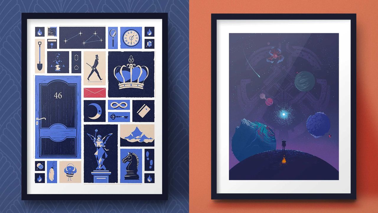I'm always on the lookout for cool art prints of my favourite games, but particularly ones that don't scream GAMER. I found Jeff Langevin's work on one of my many online art print hunts, and their work fits the brief seamlessly. Langevin creates artwork inspired by a bunch of different games, but the two that caught my attention were their Blue Prince and Outer Wilds prints - and they're awesome. They're both not too in-your-face about their inspirations, and are very much in the school of 'if you know, you know', which I love.