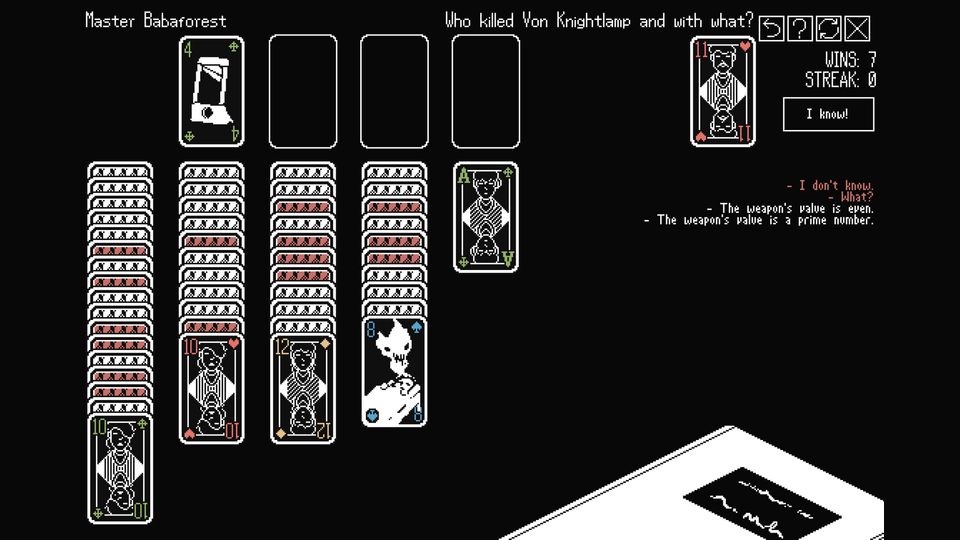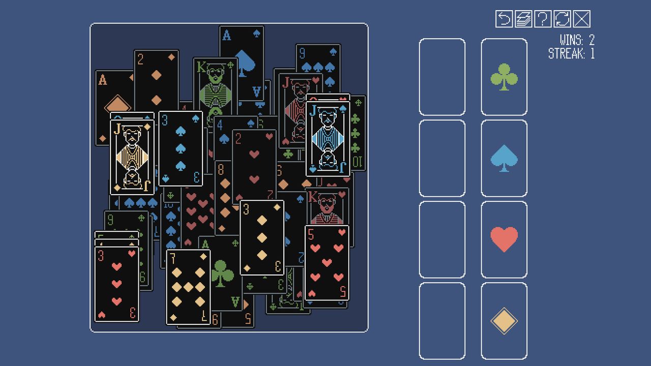 A Solitaire Mystery has a simple but pleasant pixel art style, a contemplative soundtrack, and no story or non-solitaire elements at all. The game was first released on itch.io and was regularly improved on by Hempuli, leading eventually to the addition of many new variants and a rerelease on Steam in 2025.