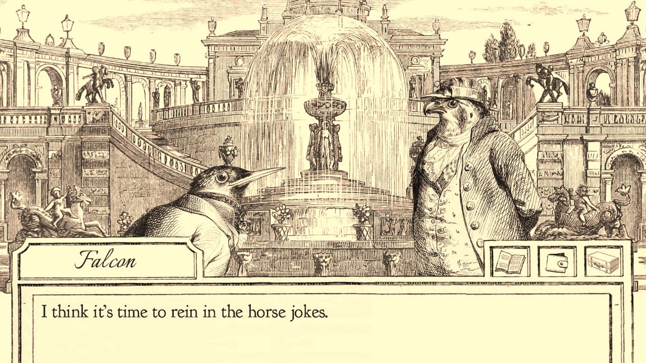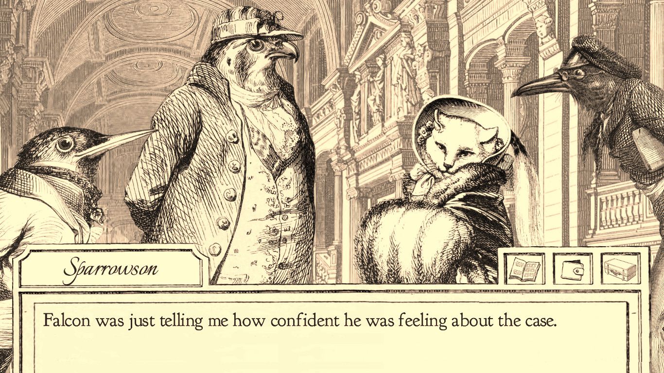 Play the role of Monsieur Jayjay Falcon, a bird of prey with a good heart and questionable lawyering expertise. Join him and his witty apprentice, Sparrowson, as the two take on clients, interview witnesses, collect evidence, and deliver justice to the guilty.
