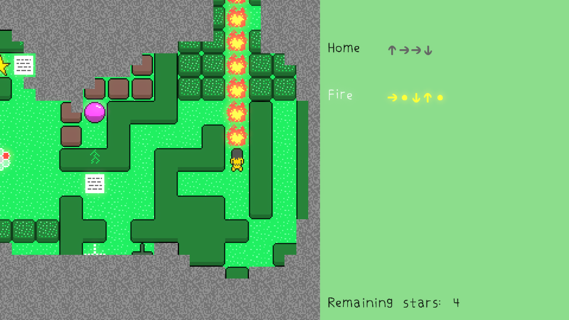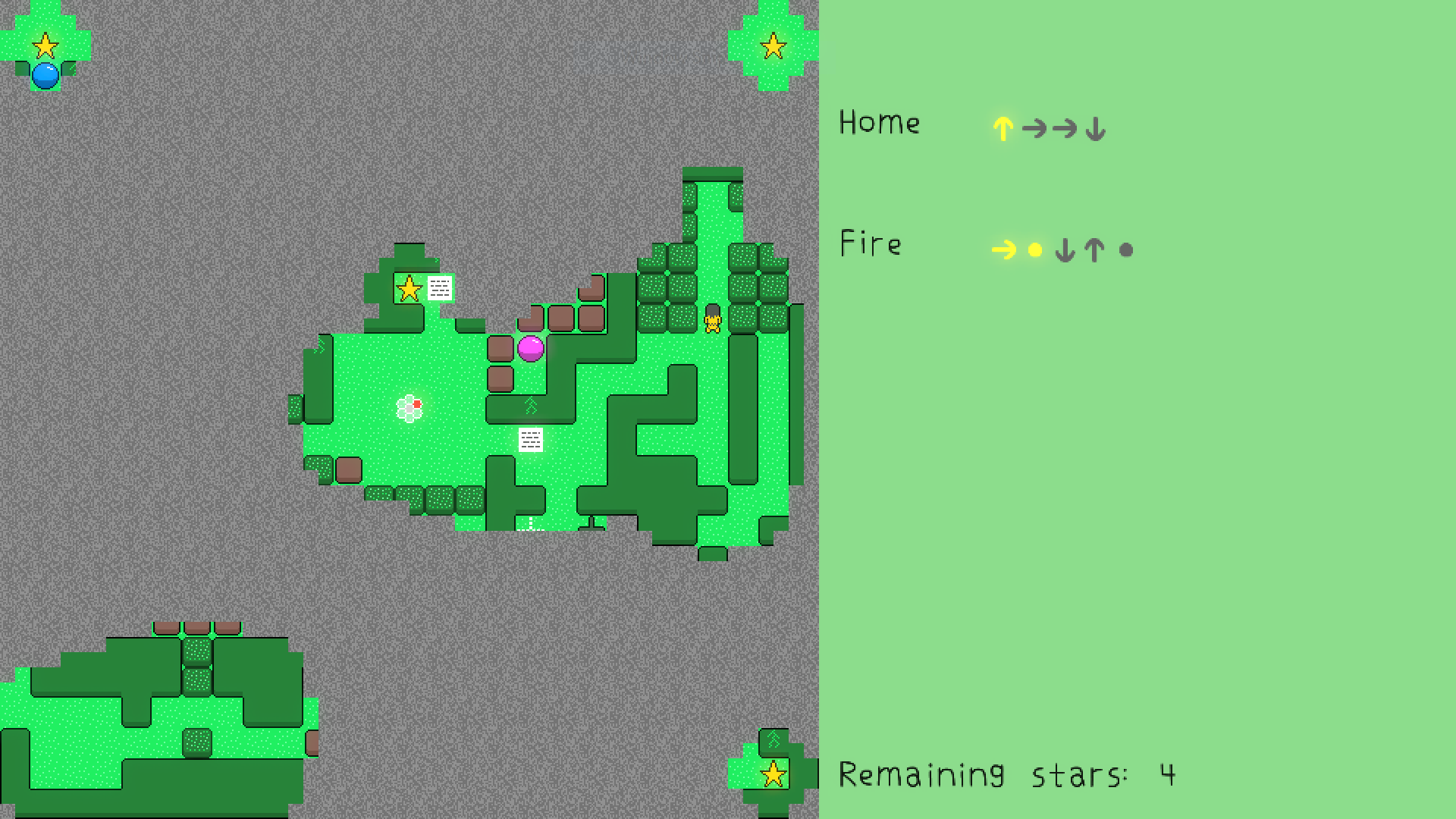 Bee Magic is a free grid-based puzzle game about casting spells by moving your character around. In order to collect the four stars on the single-screen map, you’ll have to perform specific input sequences to trigger the spells and get past obstacles. The game only contains one level, but it shines in being able to reinvent itself across playthroughs.