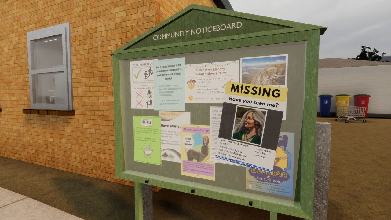 You play as Danielle, an American tourist travelling to an old town in the Australian countryside to visit her friend Marisa. Upon arrival, you discover that Marisa is not only nowhere to be found, but that she’s actually one of the many people who have recently vanished without a trace from this seemingly harmless small country town.
