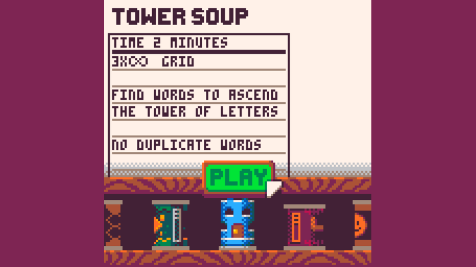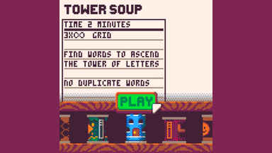 - Tower Soup - each word ascends you up the letter tower (bottom row of letters is removed)