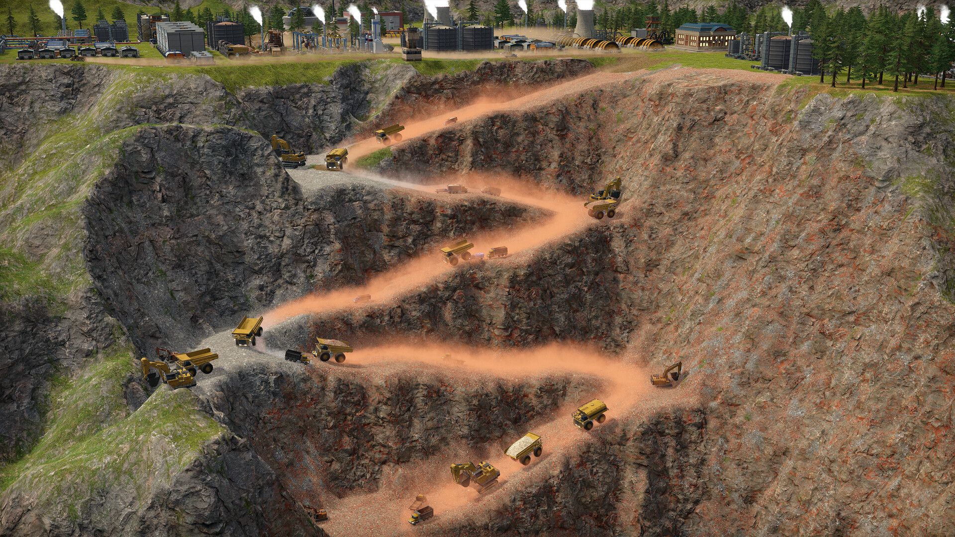 Dig out mountains, carve valleys, and terraform the terrain to create efficient mega-factories. Find the natural riches of your land and use them to expand your empire. Mine coal, iron, copper, gold, or pump underground oil and water! Make open-pit mines to extract valuable ores from underground, or just dump excess rocks into the ocean to create a new land to build on! Remember that no mountain is tall enough for your fleet of excavators!