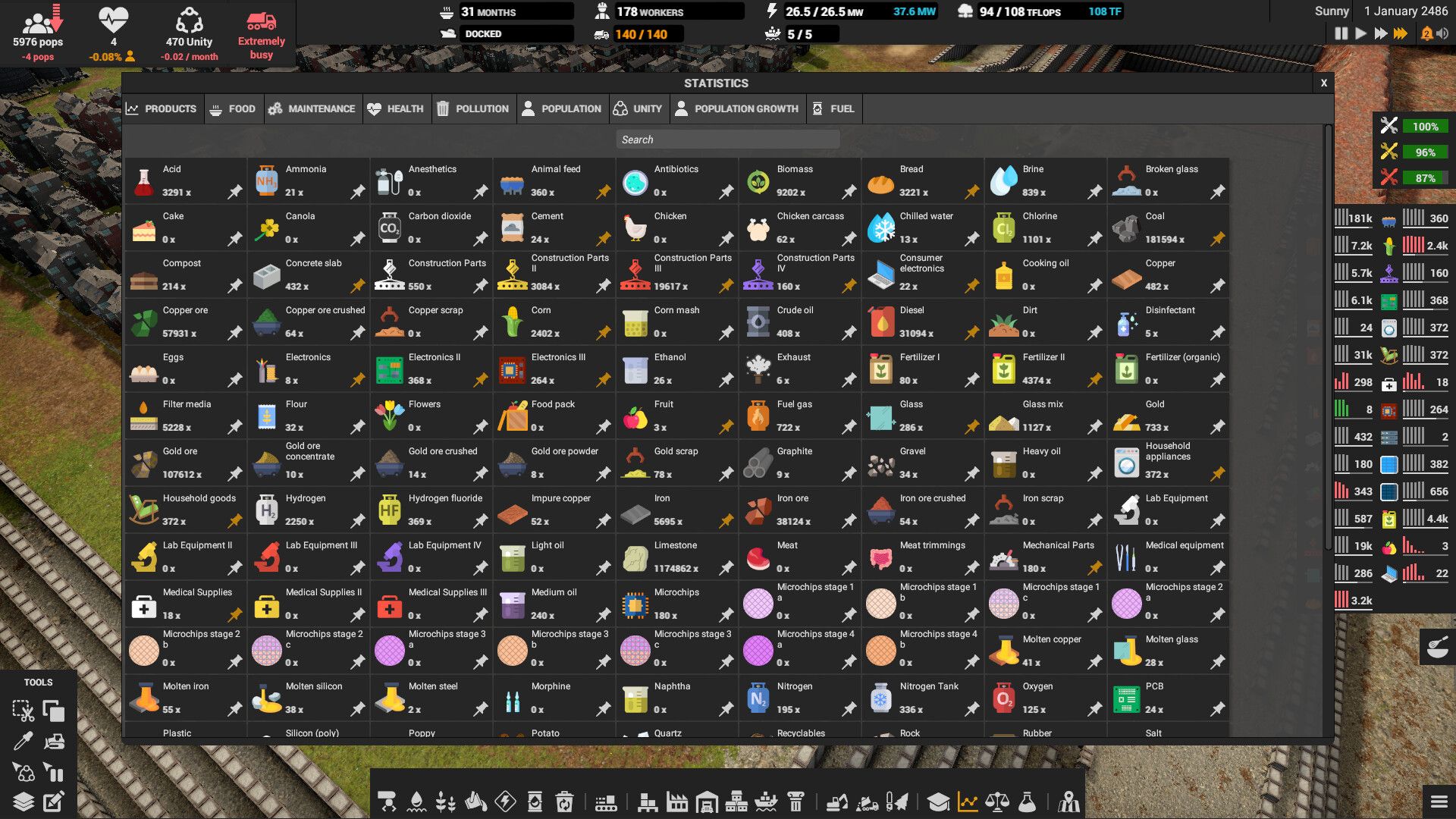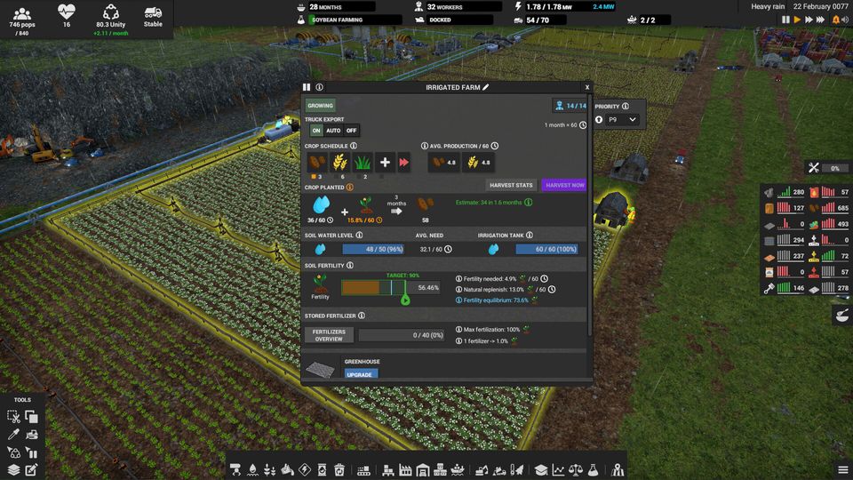 Logistics systems ensure that trucks will automatically deliver products where they are most needed. You can configure the logistics to make it more efficient. Don’t forget to build enough trucks or upgrade existing ones to keep things moving!