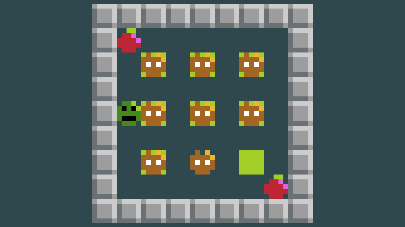 Constrictor is a free grid-based block-pusher about guiding a hungry snake to eat apples and squeeze its prey (those poor little rodents!). The snake can move along the grid, extending from its starting position, but is unable to cross its own path. Your goal is to find a route through the puzzle to not only eat each apple, but also squeeze every rodent by occupying two spaces on either side of them.