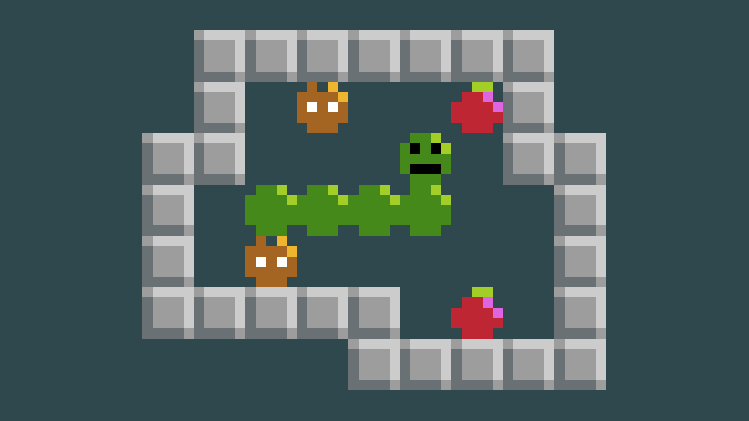 Guide a hungry snake to eat all apples and squeeze some unfortunate rodents.