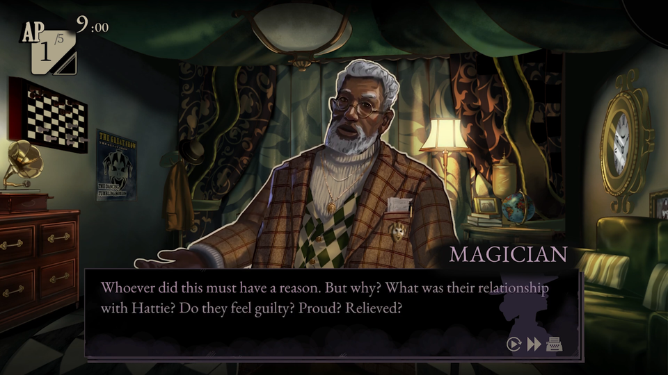 With only limited actions one can take before passing time, plan carefully about which clues to pursue and which locations to investigate.