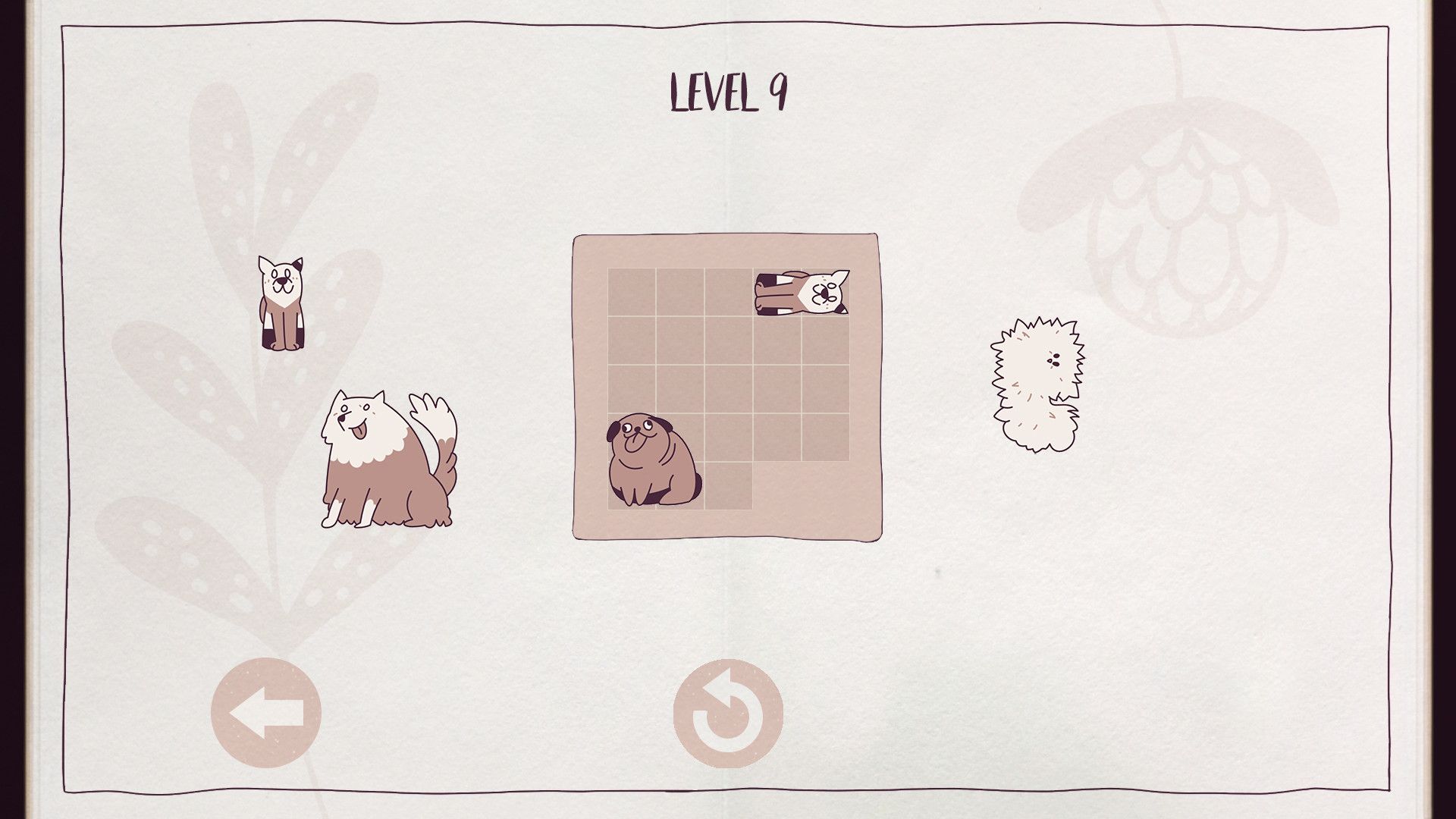 Dogs Organized Neatly is a packing puzzle game about arranging lovely hand-drawn dogs. For each level, you get a small number of dogs that you have to rotate and position until they all fit in the grid. It's straightforward gameplay, elevated by cozy art and a smooth difficulty curve.