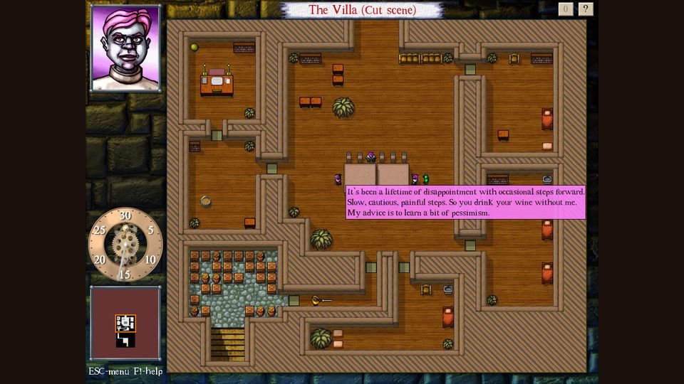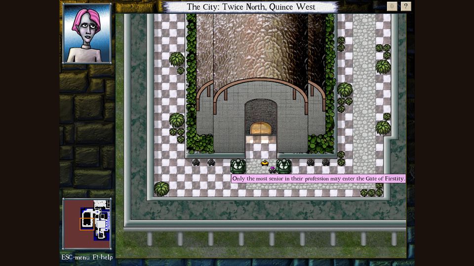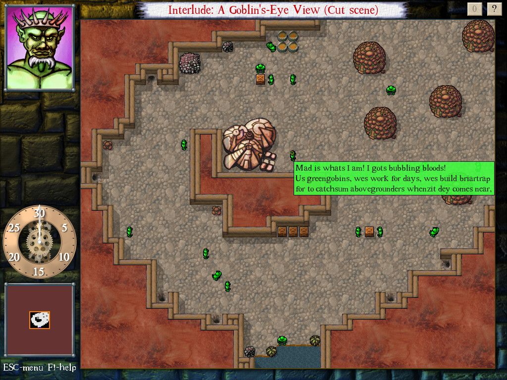 You begin as a rather ugly man named "Beethro" who travels deep beneath the ground. There are other people down there too, citizens of a mysterious "Rooted Empire", that are carving tunnels and building things. Beethro just wants to know why, but it's hard to get a useful answer. He was always fond of saying "there is no problem that can't be solved with a really big sword," but upon arriving at the underground capital, Beethro is startled to find that nobody seems interested in attacking him. No, for some reason, they would rather persuade him to stand in a very long line.