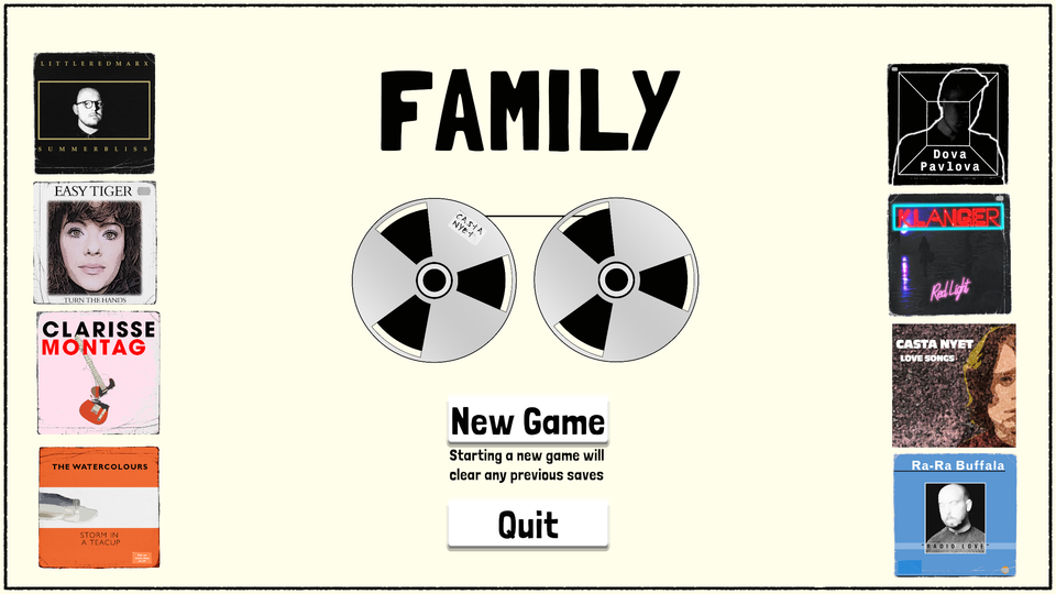 Family is a puzzle game, based around a fictional, forgotten 80s indie music scene.