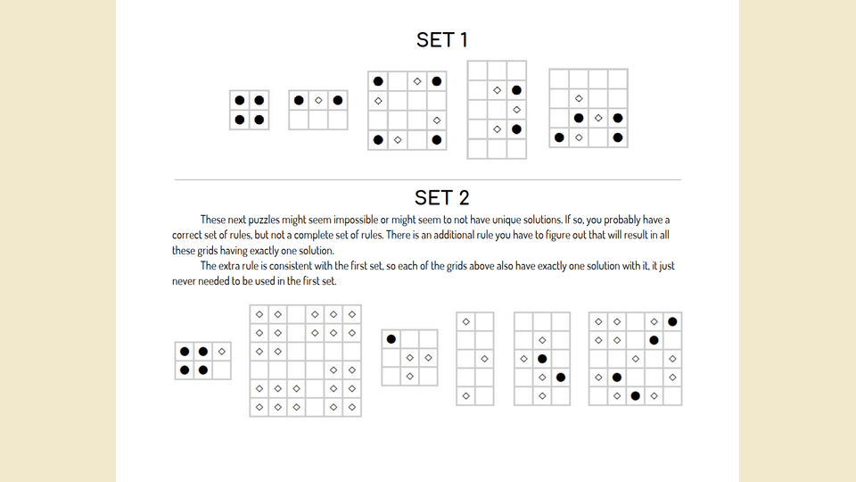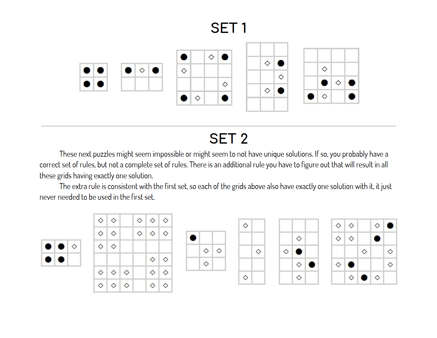 Infer the rules behind a series of grid-based puzzles based on the unicity of each solution.