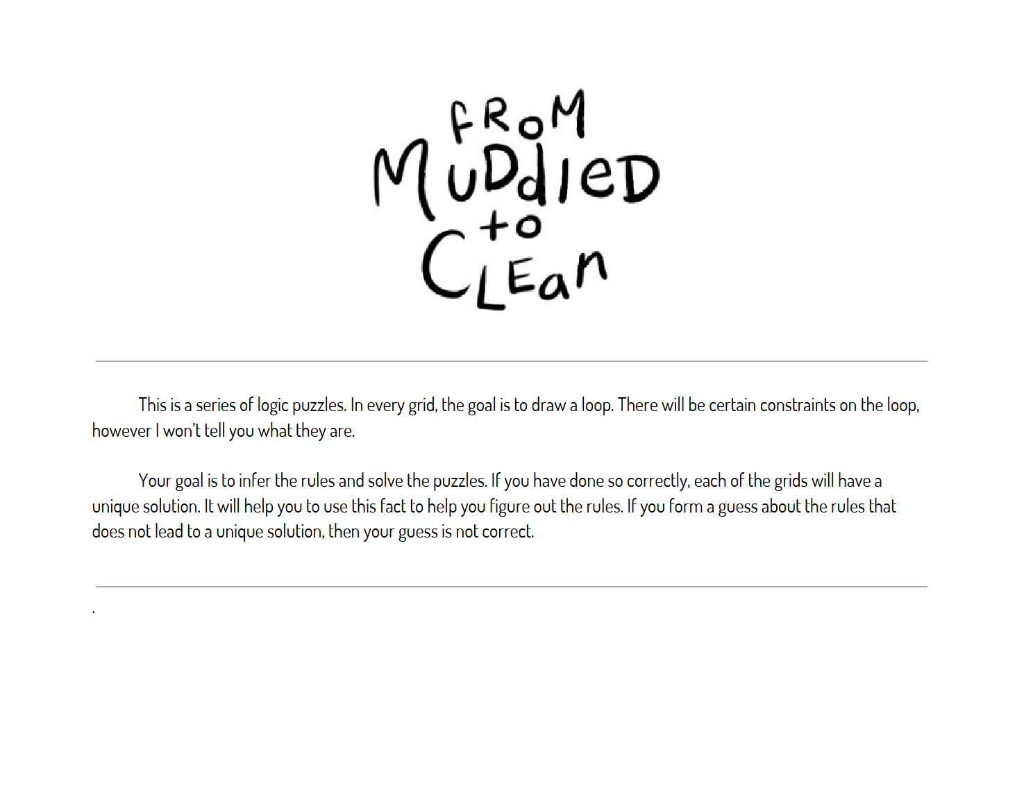 This is a series of logic puzzles. In every grid, the goal is to draw a loop. There will be certain constraints on the loop, however I won’t tell you what they are.