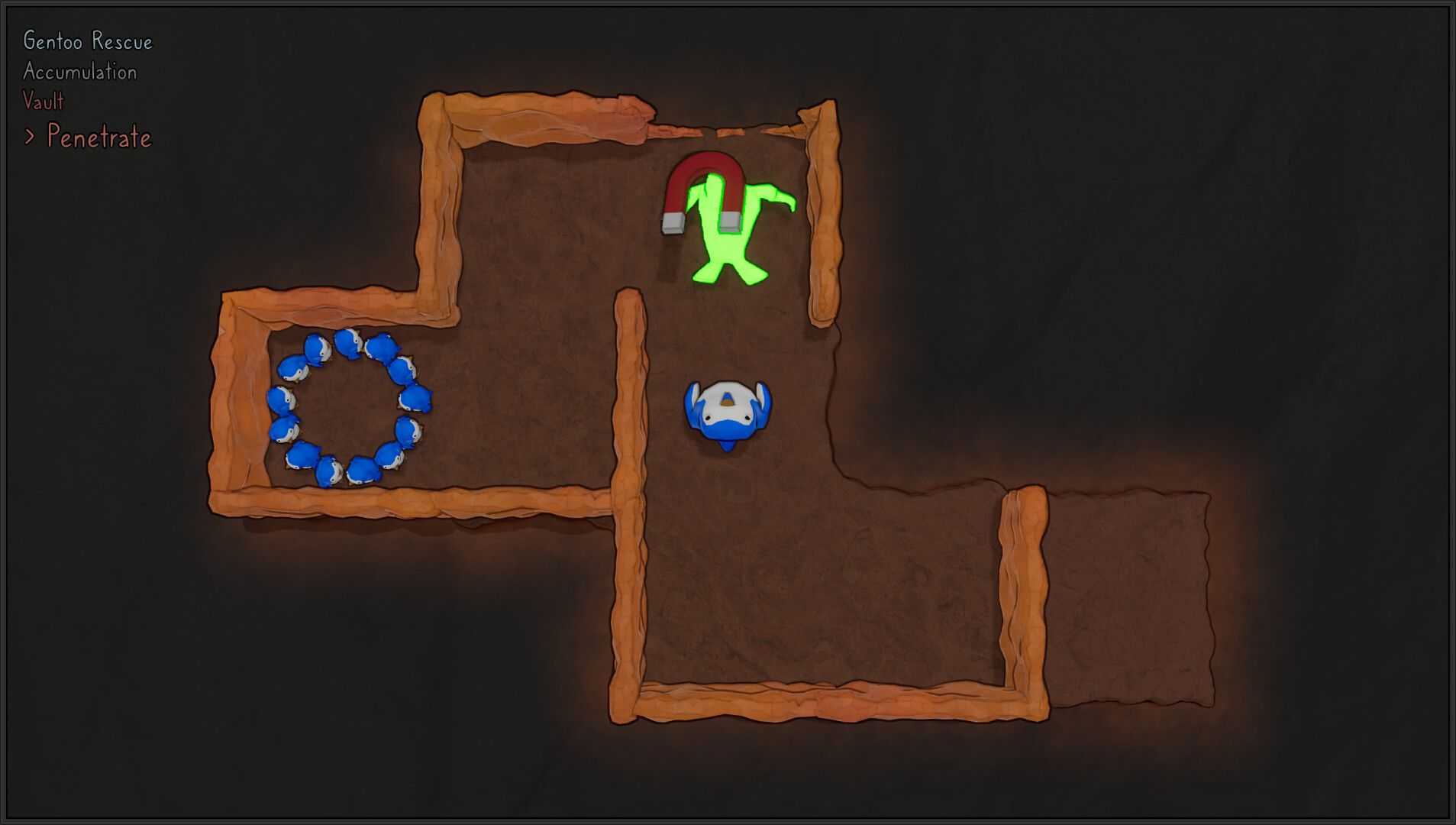 Get penguins home safely in Gentoo Rescue! Penguins must coordinate with walruses, who just want to escape into the water. Items let you break the rules in progressively more extreme ways. They come with drawbacks, though, so tread carefully.
