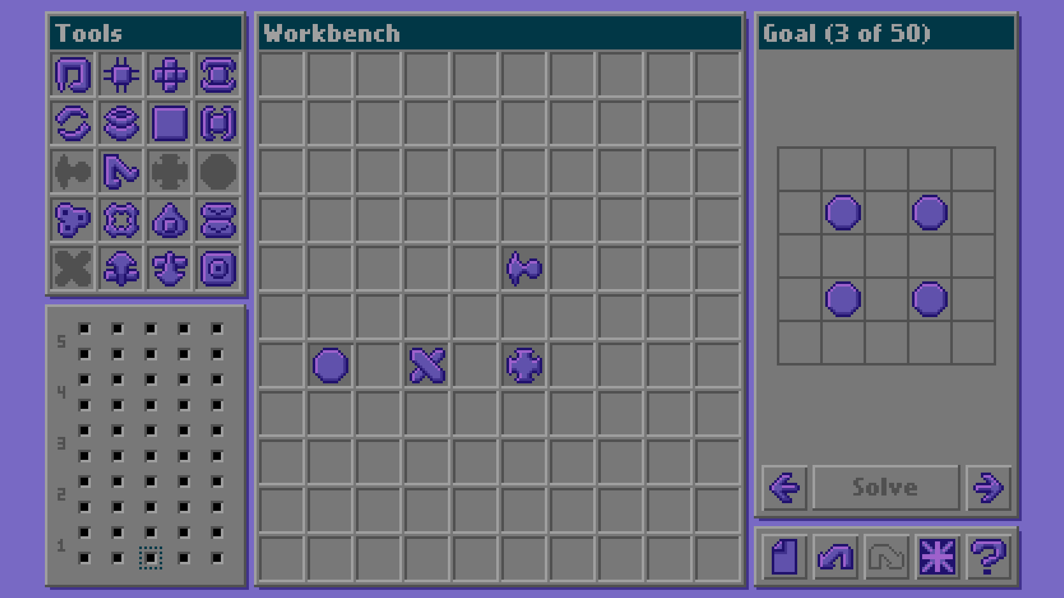 Gestalt_OS is a cryptic puzzle game about placing symbols on a grid and observing their effects. The game presents 50 goals, each of which specifies a pattern of symbols that you must create on the grid. Only by experimenting with each symbol and understanding how its effects can synergise with other symbols will you be able to solve these challenging puzzles.
