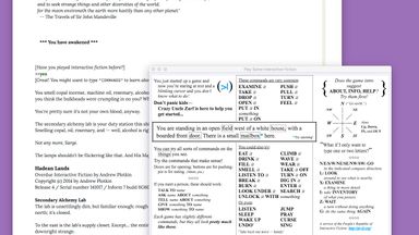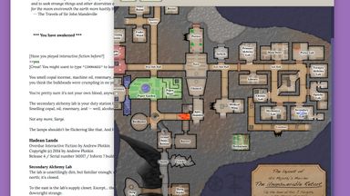 The game's sophisticated goal-tracking system permits you to experiment freely! Any ritual you've learned can be performed with a single command. Any puzzle that you've ever solved can be re-solved automatically. Click on the in-game map to travel to any room you're familiar with; the goal system will even find known keys and re-solve intermediate puzzles to get there. But beware: many puzzles have multiple solutions. If the ones you've found don't fit together, you may have to go searching for alternatives...