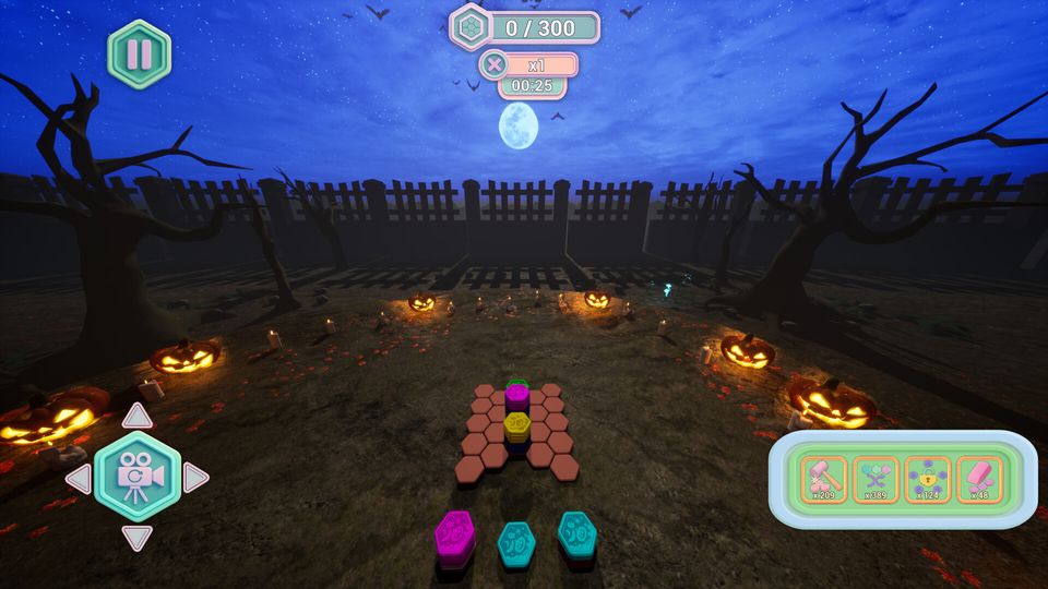 HEXA WORLD 3D is an atmospheric 3D hex-puzzle game where you build towers of hexagonal tiles, trigger chain reactions, earn XP, and unlock new maps, tile skins, and tactical boosters.