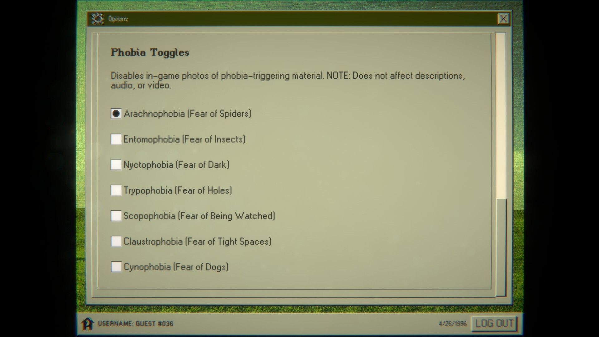 - "Phobia Toggles" - An accessibility option that allows you to disable in-game images for common phobia triggers including arachnophobia and more.