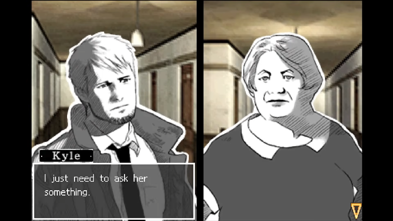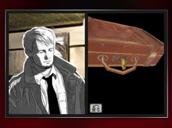 The DS system is held like a book, which allows characters on the screens to face left or right for more realistic conversations. The unique controls let even novices enjoy themselves. The unique hand-drawn character portraits and their animations are in black and white, making them exceedingly distinctive and able stand out, graphically speaking, from the rest of the game. In the tradition of Another Code, the use of the DS to solve riddles is alive and well in Hotel Dusk: Room 215.