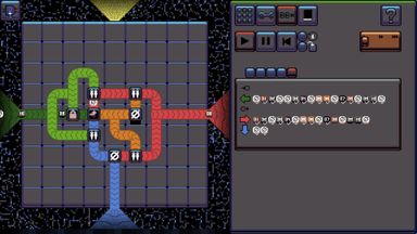 There are only a handful of base components to master. Clone replicates a token. Filter redirects a zero or Nul token to another path. A lock will not allow a token through until it has been unlocked from the side. Switch directs tokens left or right, which can be selected by supplying a token at the other end. Increment and decrement units add or subtract one from the token. And finally a nullifier converts a zero to a Nul and vice-versa. All other units in the game are ones made by you.