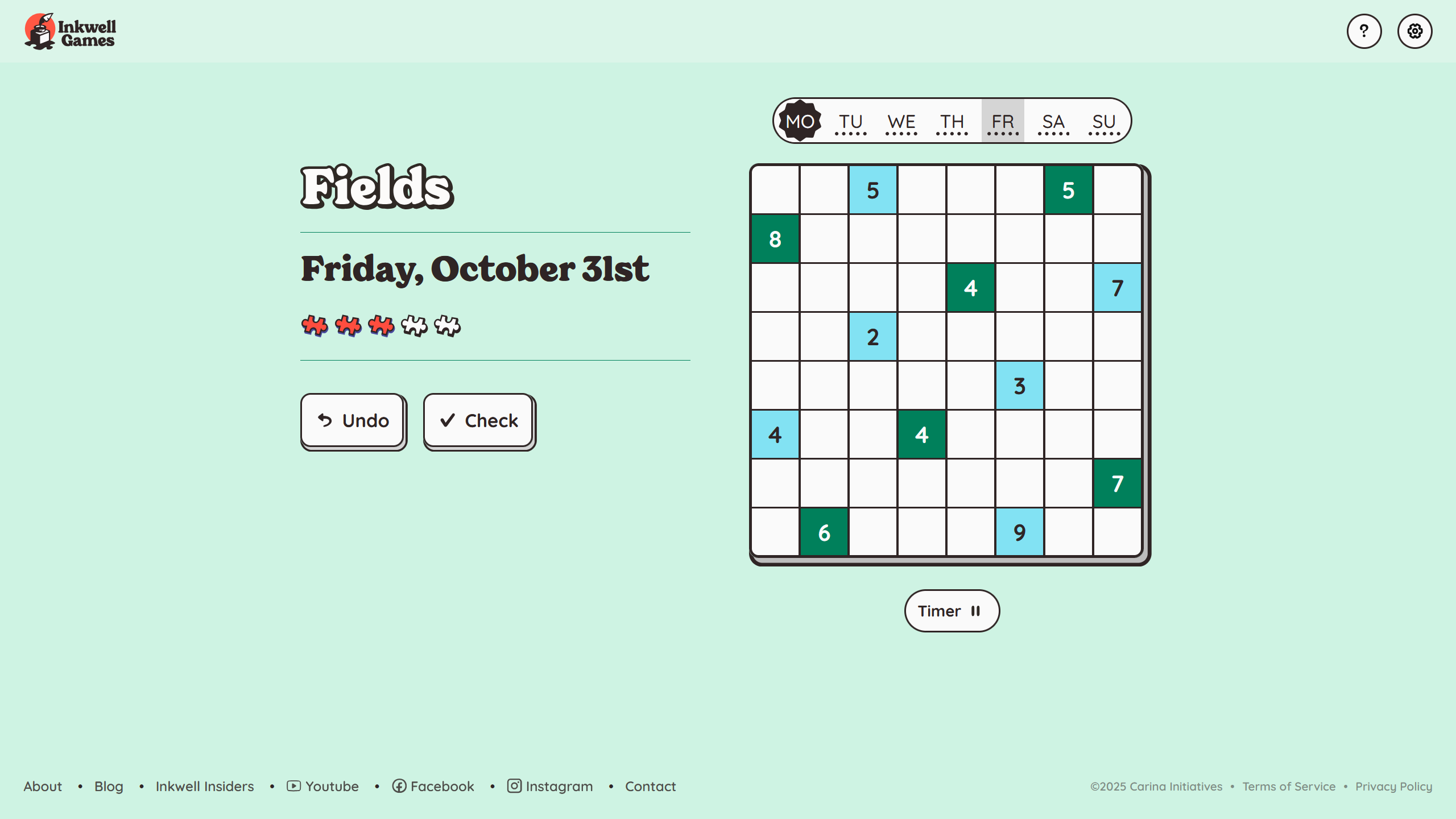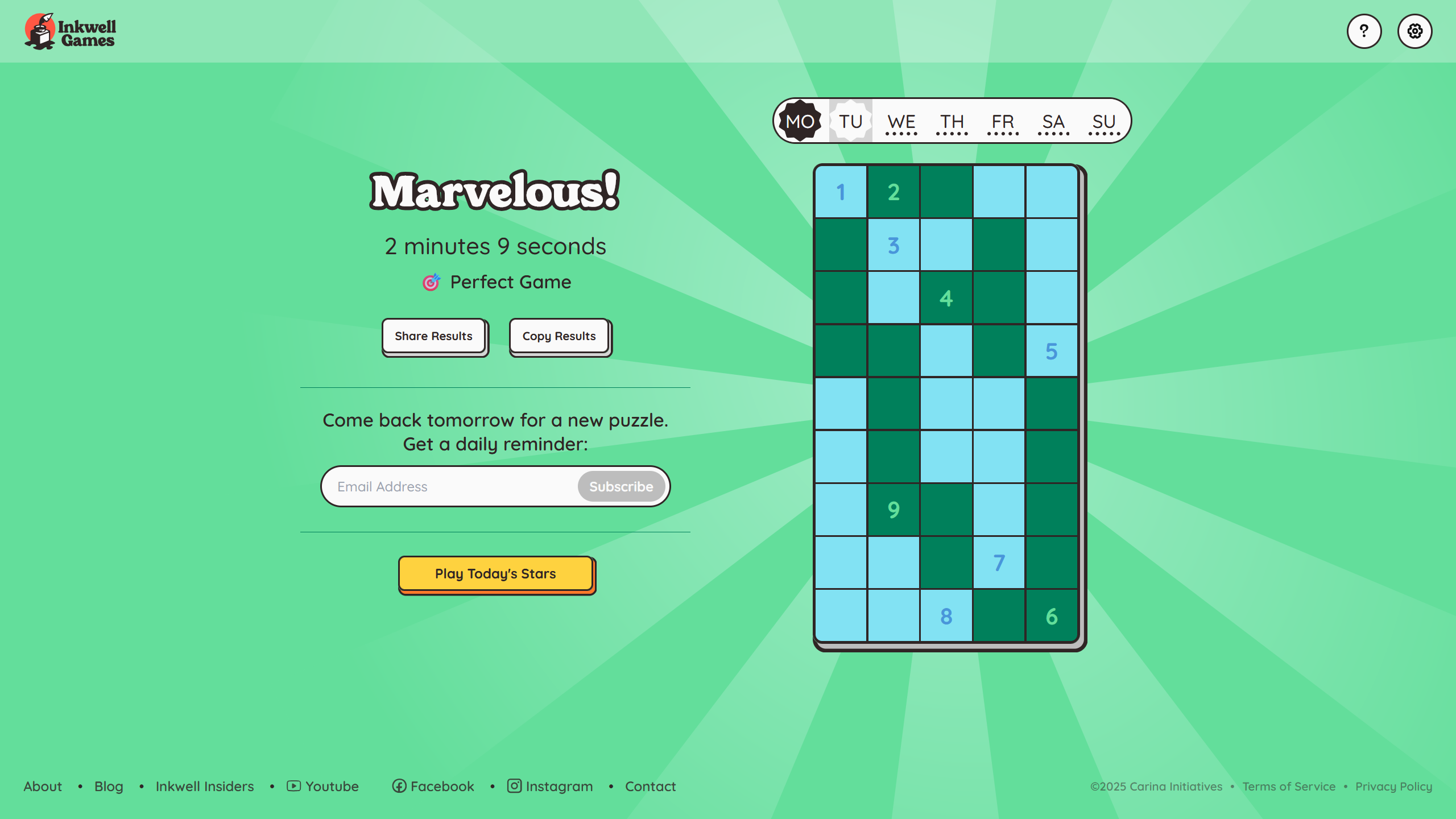 Every week, puzzles start easy on Monday and get more challenging as the week progresses.