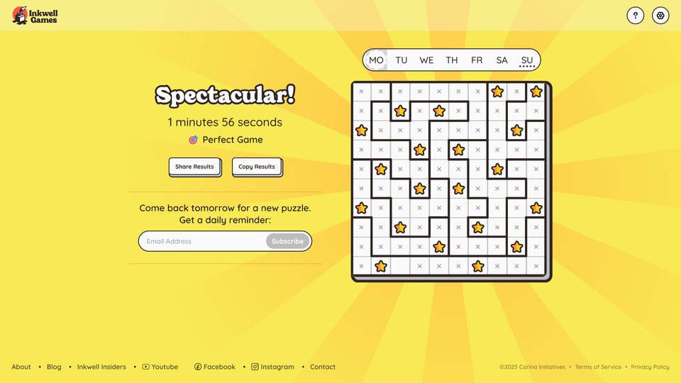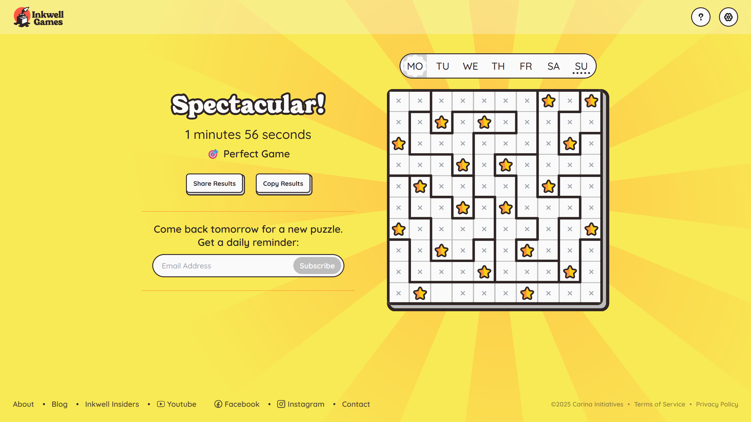 Every week, puzzles start easy on Monday and get more challenging as the week progresses.