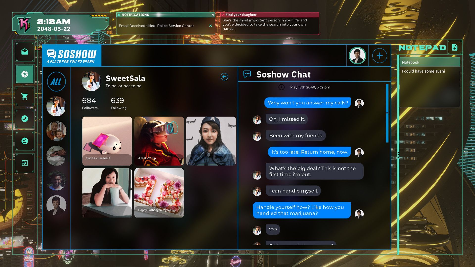 Use hacking and social engineering to find your missing daughter in a dystopic sci-fi thriller.