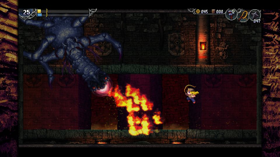 With Lemeza Kosugi laying low after the events of the previous game, it is up to his daughter Lumisa to explore the monster-infested labyrinth of Eg-Lana. Each gameplay loop has you choosing a path into an area within the ruins, fighting enemies, and uncovering secrets in order to progress further. La-Mulana 2 features no missable items and plenty of checkpoints, making it somewhat less taxing than the original game.