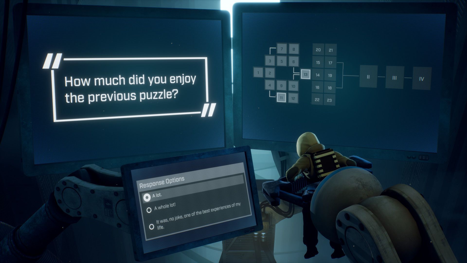 Lab Rat’s story revolves around SARA, a snarky, robotic AI bound to elicit comparisons with GLaDOS, the well-known narcissistic computer system from the Portal games. Still, the writing develops its own humorous threads, with many biting comments aimed at data-obsessed practices in videogame playtesting. Gwen Frey, Chump Squad’s founder and lead director of Lab Rat, enrolled two fellow BioShock alumni to work on the game, which shows both in the sharp writing and in the richly detailed environments.