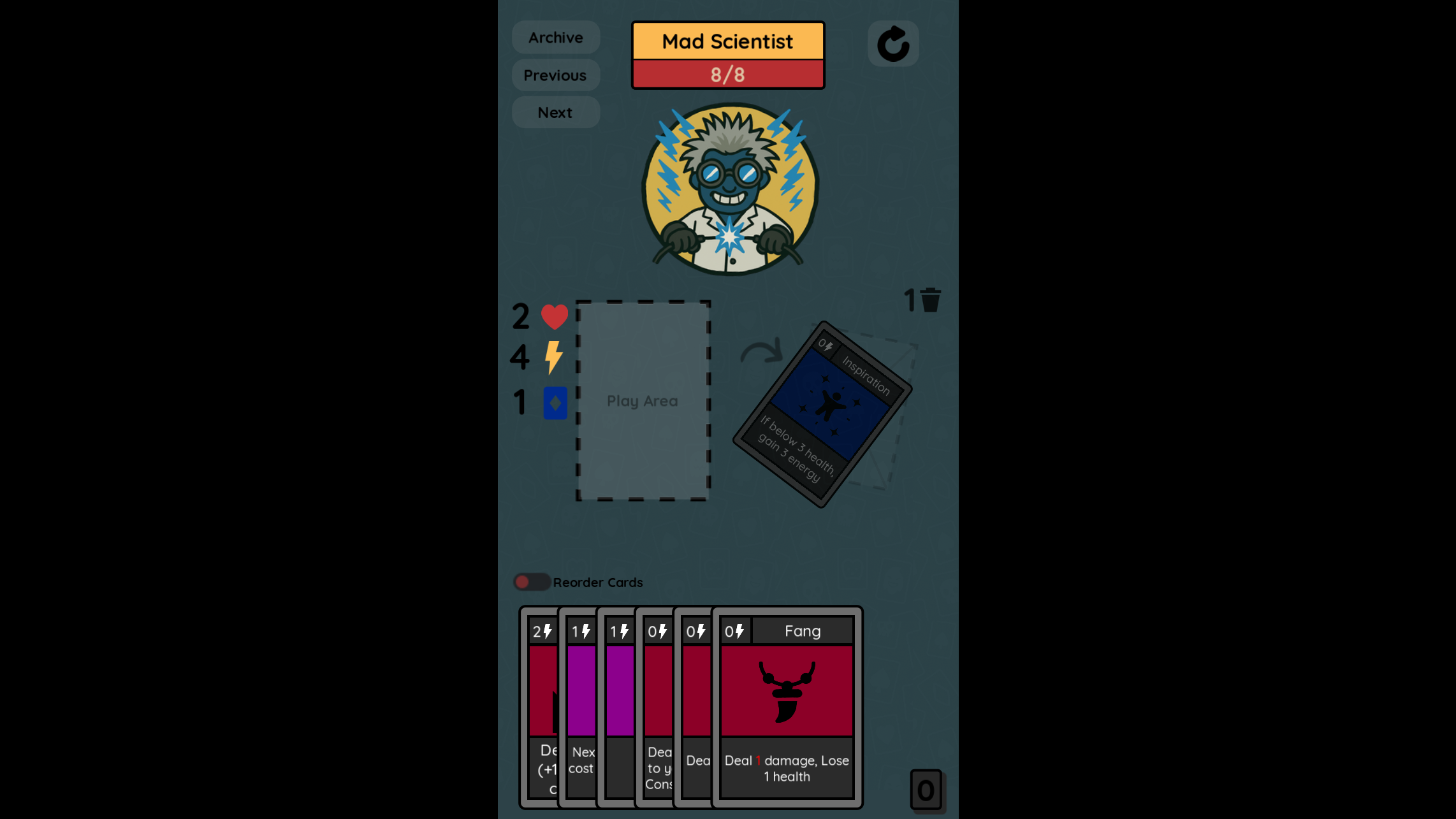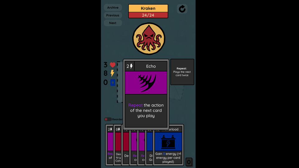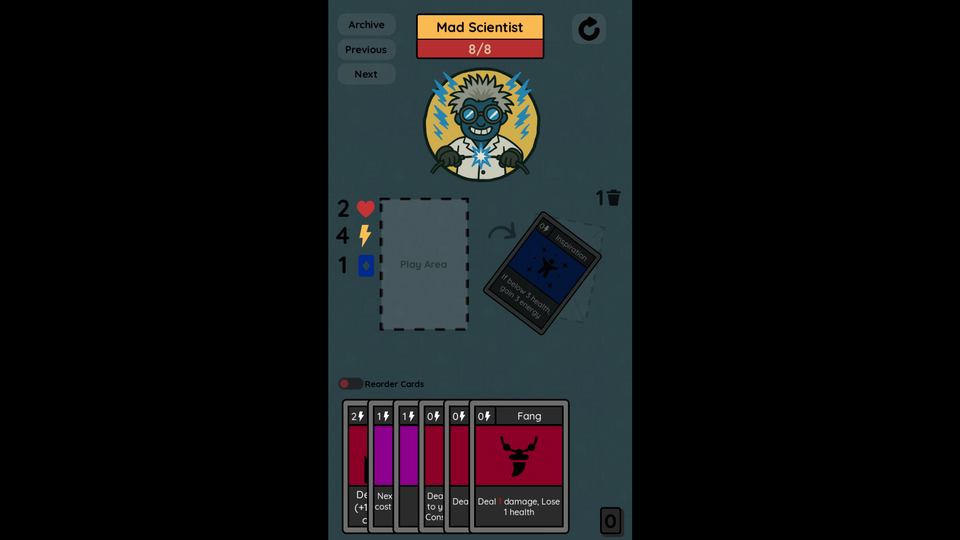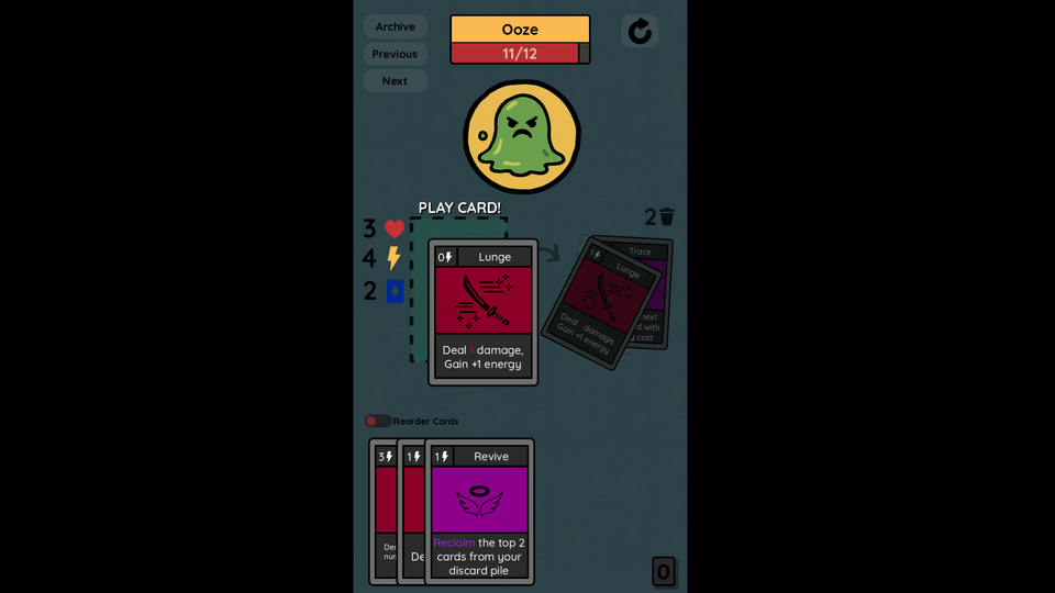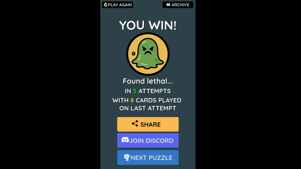 Lethal is a daily card puzzle game where you kill the enemy in one turn. Slay the Spire (card battler) meets Wordle (daily puzzles).