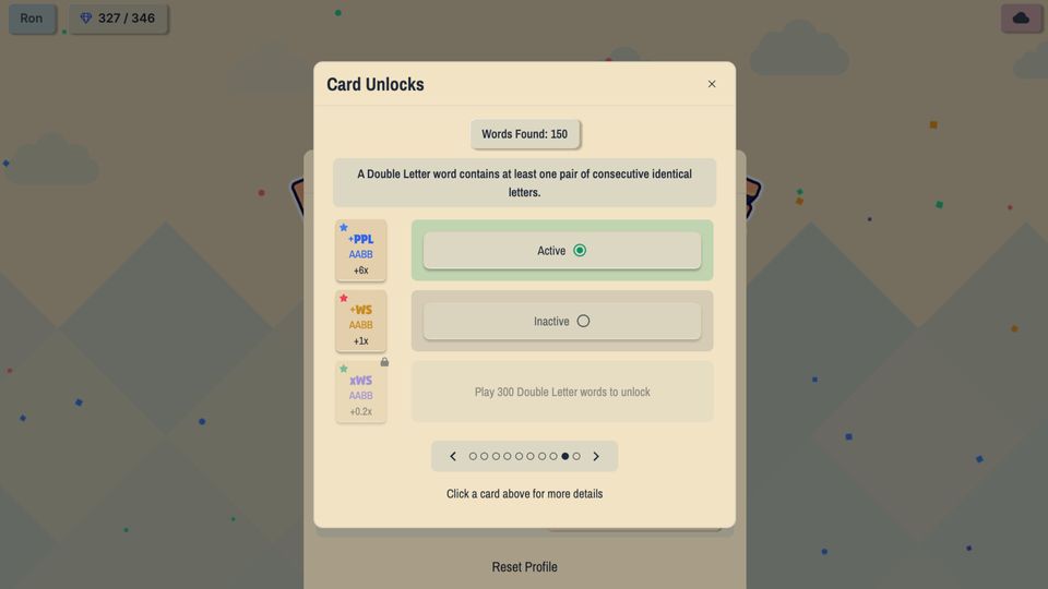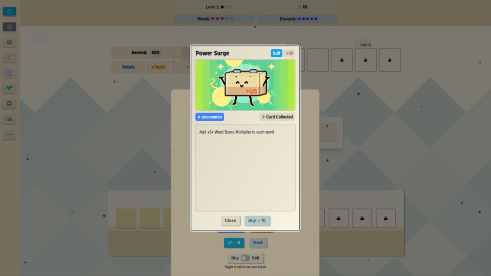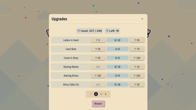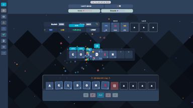 A word-based roguelike with powerful card modifiers and meta-progression features.