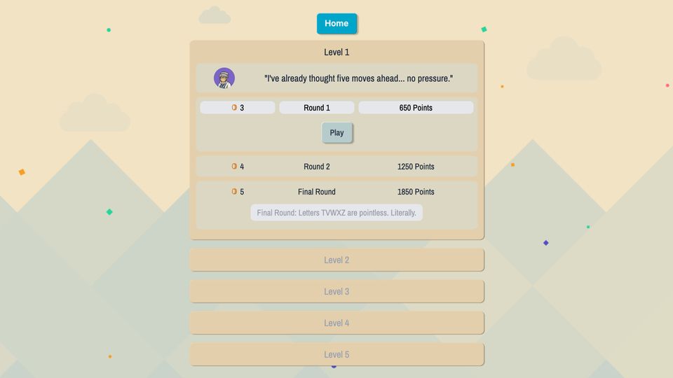SOLO WORD GAME - Designed to be played alone, but specific runs can be replayed by friends using a shared seed!