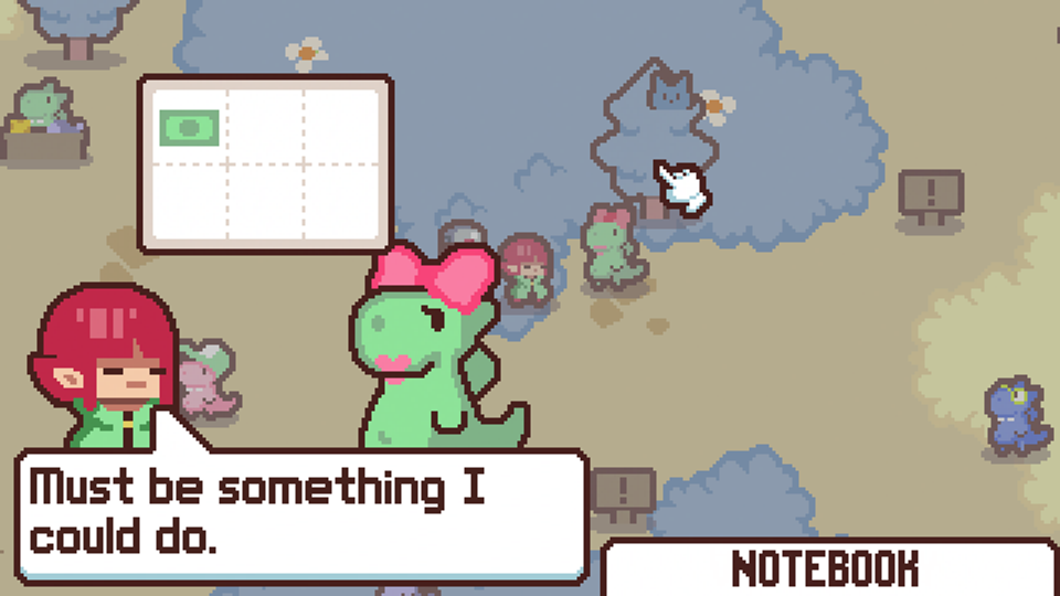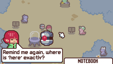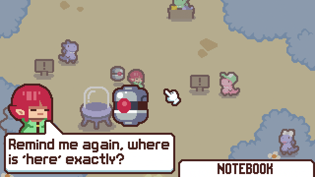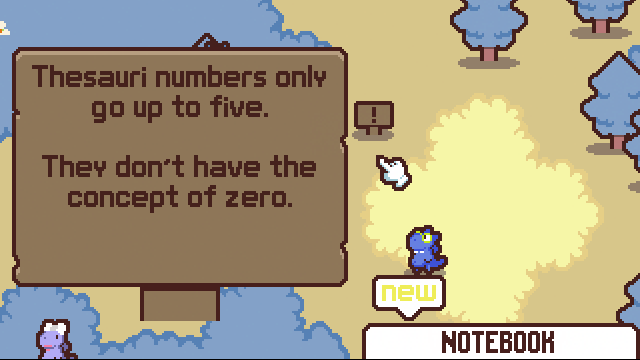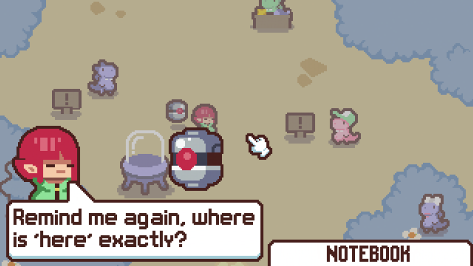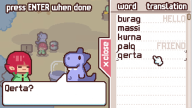 Lost in Translation is a language deciphering game about understanding the local creatures of planet Thesaurus. You have to log your translation guesses in a dictionary based on various context clues and a few helpful signs. The game will then replace the words on the fly, so as you make progress, the conversations will (hopefully) start making more sense.