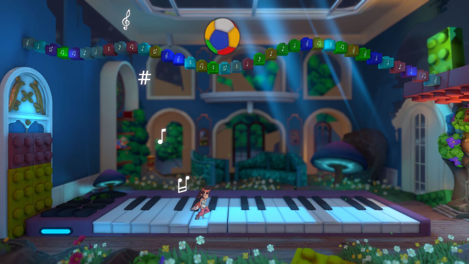 Solve platforming puzzles in a sliding-tile playground world.