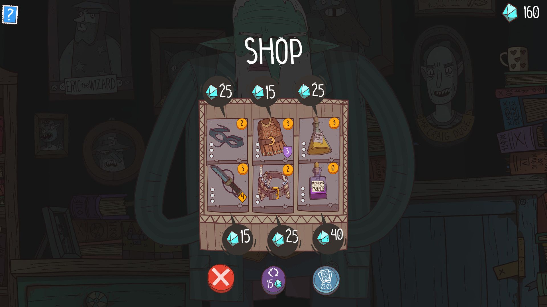 Your hero starts out with a deck of basic cards (items & abilities). At the start of each dungeon, your hero's deck is shuffled into the dungeon deck (monsters) and dealt out in a 3x3 grid. Defeat monsters to earn gold, then use that gold to acquire your items & abilities from the dungeon. Remove a tile from the dungeon and a new one will be dealt out from the dungeon deck. After you clear a dungeon, you'll earn new, powerful cards to add to your deck as well as perks - passive traits that bend the rules of the game.