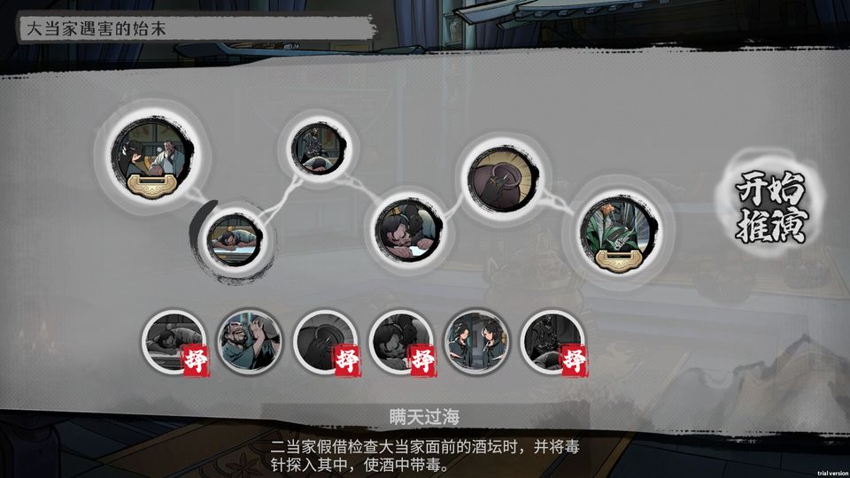 Catch the inconsistencies between testimonies and the actual evidence to solve wuxia mysteries.
