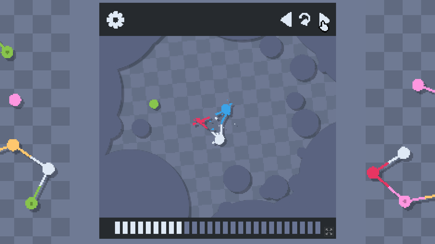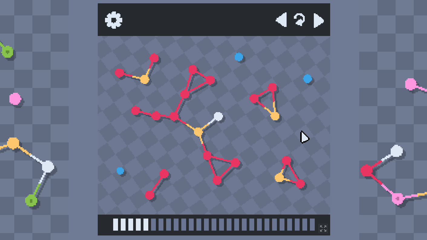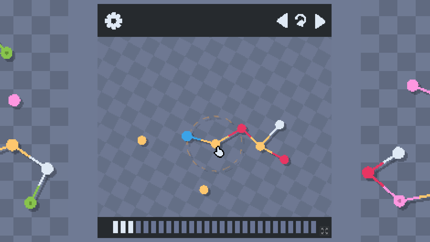 Oh my orbs... is a rule-discovery game involving various colored orb nodes. These nodes link themselves up when they’re close enough together; you need to connect them properly while taking into consideration that they don't all behave the same way. It's a quick, fun, playful little game that lets you poke around to decide for yourself what's going on.