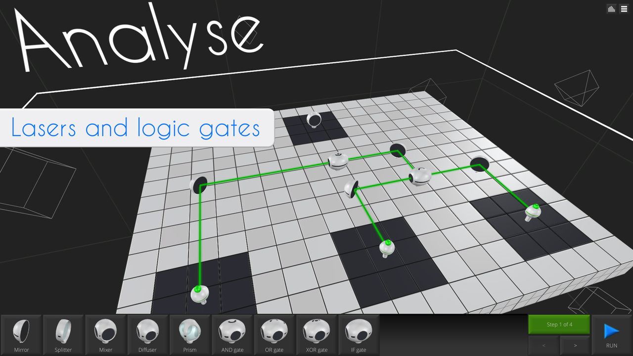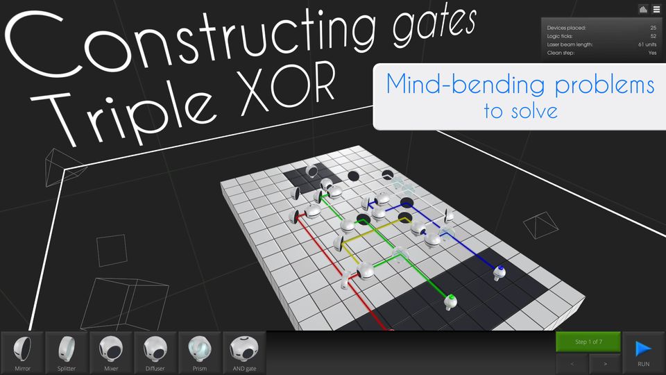 Prelogate is a logic puzzle game. Solve puzzles by redirecting laser beams, mixing them and controlling them with logic gates.