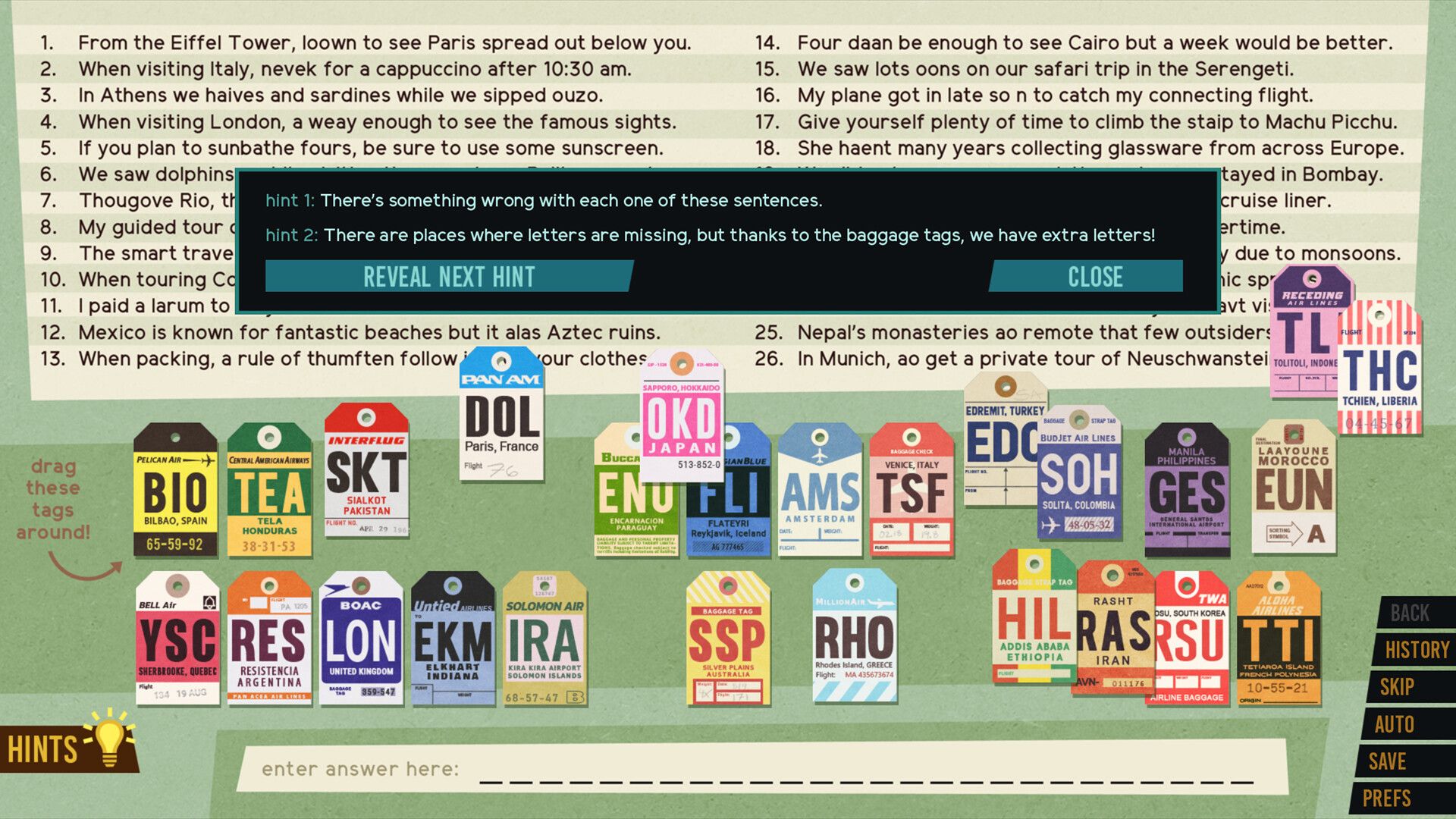 Pursue diamond thieves and a trail of cryptic puzzles in this short ‘60s spy adventure. As Agent Epsilon you’ll choose your path as you chat with (or chat up!) suspicious contacts. Deduce the puzzle rules, decode cryptograms and decipher clues as you solve wordplay & logic puzzles across the globe!