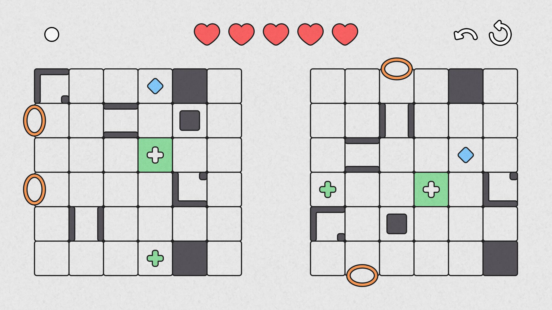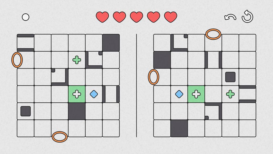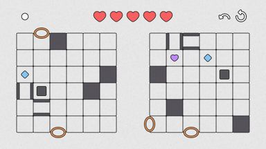 Quadrata is a minimalist logic puzzle where you control two different characters with the same keys on either side and collect diamonds with a limited number of moves to finish. The difficulty of the game increases gradually, thanks to new mechanics added every 10 levels.