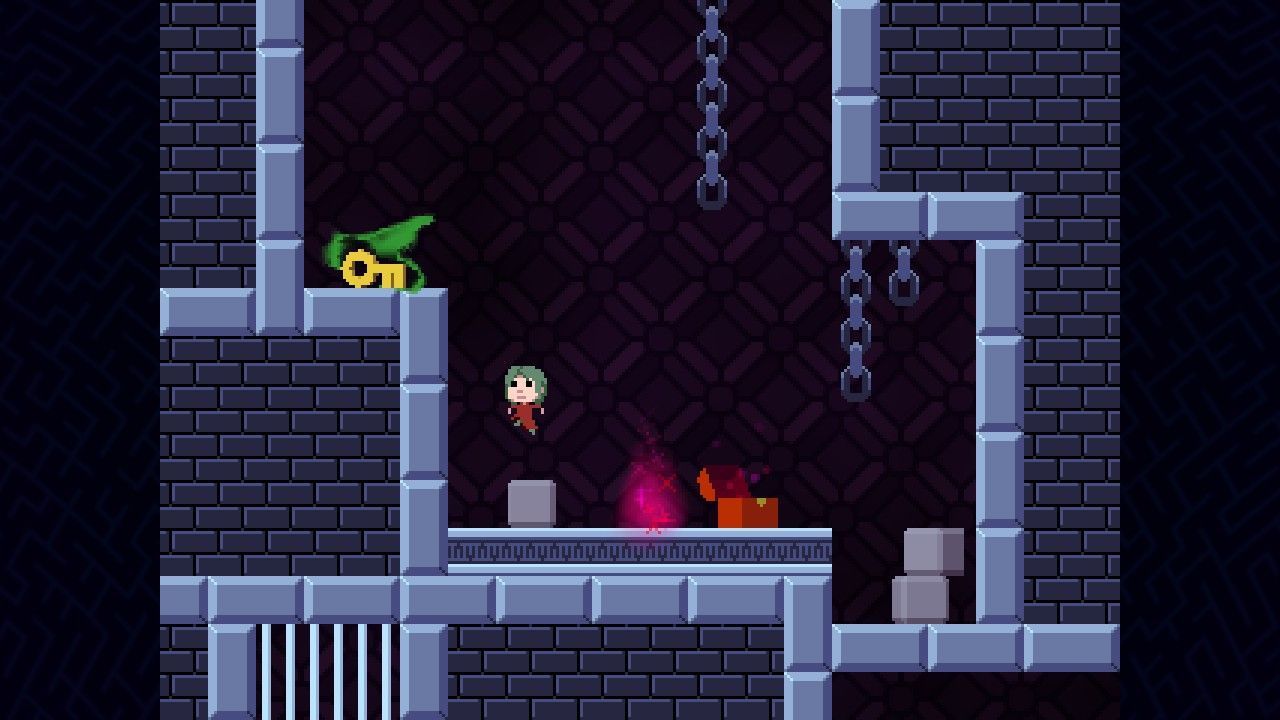 Though Recursed begins with simple solutions, new objects appear slowly throughout the levels, bringing new mechanics. Flooded rooms can be created by placing chests underwater and might allow the player to swim to areas previously out of reach. Green, glowing objects are static, which means they act differently when they are left behind in a room. Once the player discovers green chests, this will allow them to create the recursive loops that define the game. Many of these mechanics reflect concepts found in programming (especially recursion). While a knowledge of programming isn’t needed to play, Recursed is certainly a tricky logic game.