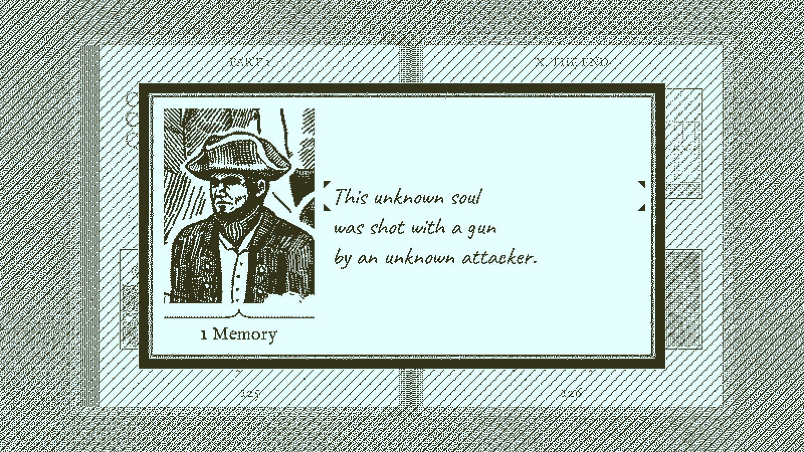 For each death, there are certain details you will need to determine: the identity of the victim, the cause of death, and their killer (if there is one). Return of the Obra Dinn requires you to put your observation and inference skills to use. In order to pin down facts, you have to guess the details of three deaths correctly. Those three facts will then be permanently recorded. As you continue to uncover more of the story, your book will fill itself and your watch will guide you to more scenes.