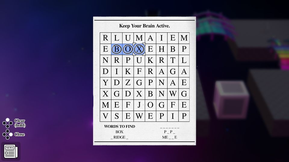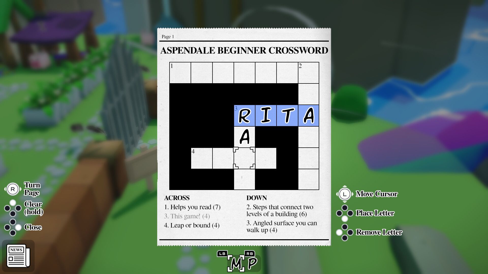 Collect letters all around a cozy world to solve various word puzzles from the town's newspaper.