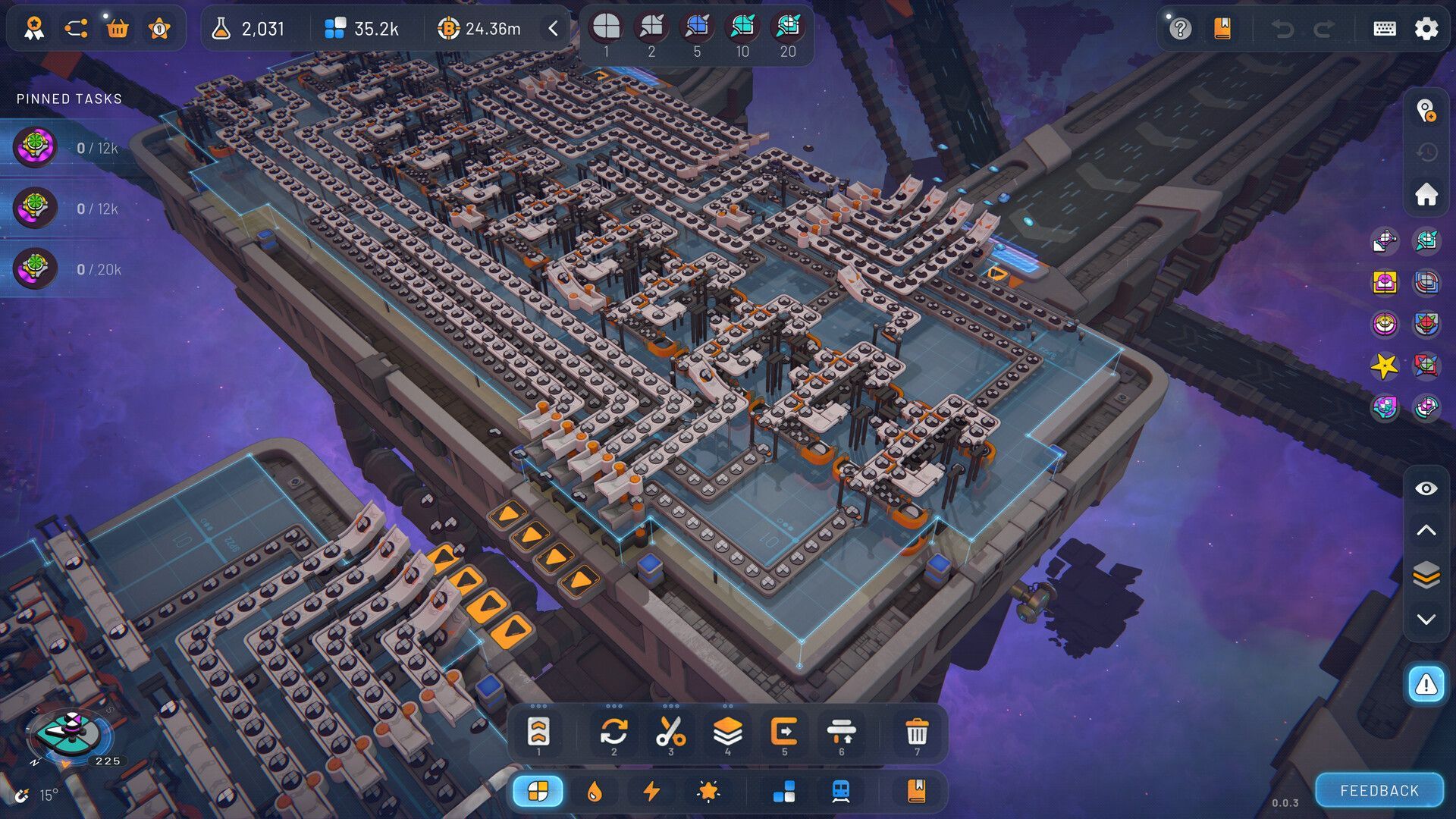 Build in multiple interconnected layers, allowing you to compact and optimize your factories in a whole new dimension. Improve your designs to get the most benefit out of every space platform built and massively increase your production throughput.