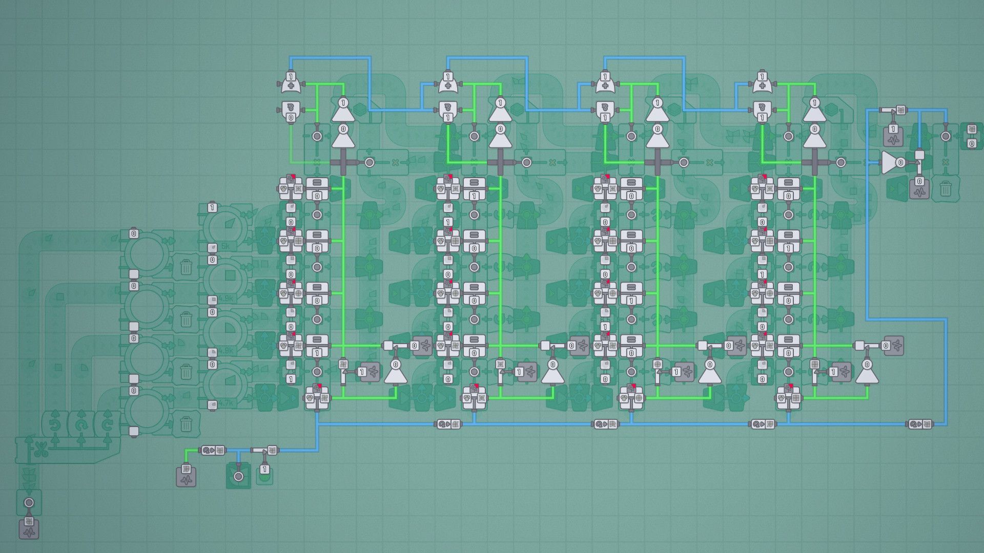 And as if that wasn't enough, you also have to produce exponentially more to satisfy the demands - the only thing that helps is scaling! While you only have to process shapes at the beginning, you will later have to color them - by extracting and mixing colors!