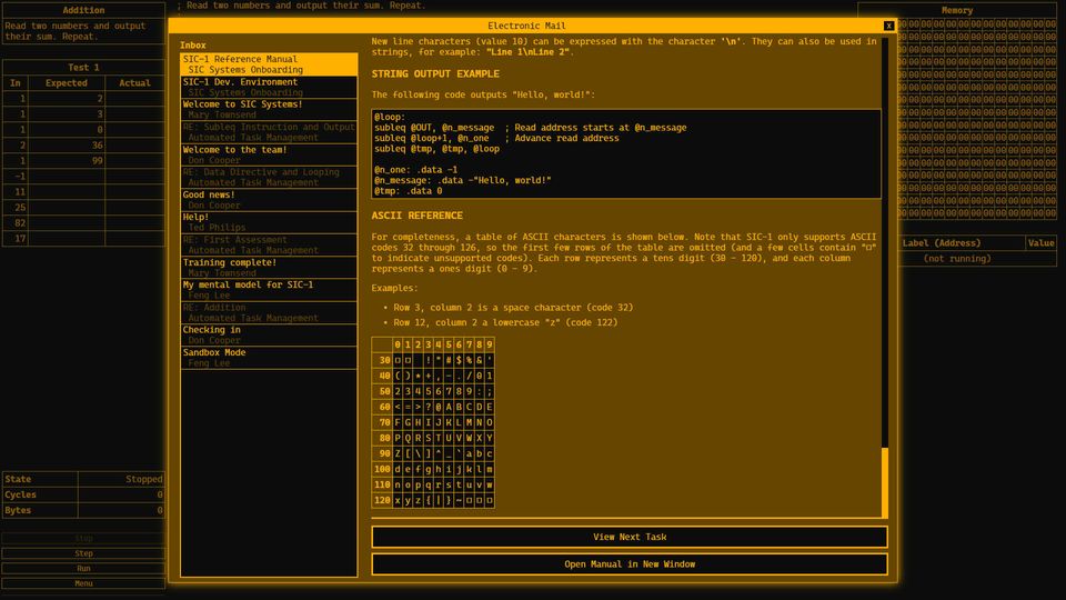 SIC-1 is a programming game where the computer only understands a single instruction.